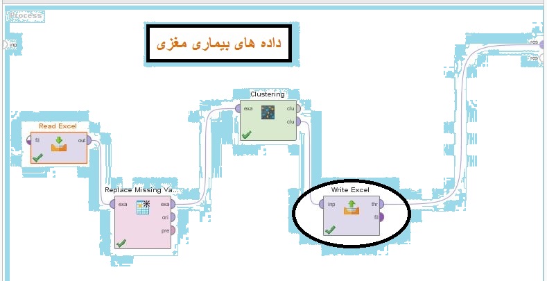 این پروژه داده های مربوط به بیماری مغزی را با استفاده از الگوریتم بدون نظارت و خوشه بندی KMEDIODS در نرم افزار داده کاوی رپیدماینر خوشه بندی میکند. همان طور که می دانید الگوریتم خوشه بندی KMEDIODS تعدادی خوشه را به عنوآن ورودی دریافت نموده و بر اساس تعداد خوشه های وارد شده(K) توسط کاربر، اقدام به خوشه بندی داده ها نموده و خروجی هایی را نمایش میدهد. الگوریتم خوشه بندی KMEDIODS در نرم افزار داده کاوی رپیدماینر دارای کاربرد های فراوانی بوده و با توجه به سرعت بالایی که دارد، فرایند خوشه بندی داده های بیماری مغزی را انجام خواهد داد.
