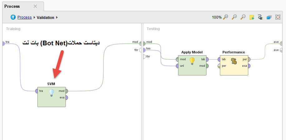 پروژه طبقه بندی(پیش بینی) دیتاست حملات (Bot Net) بات نت با استفاده از الگوریتم ماشین بردار پشتیبان (Lib SVM)در رپیدماینر